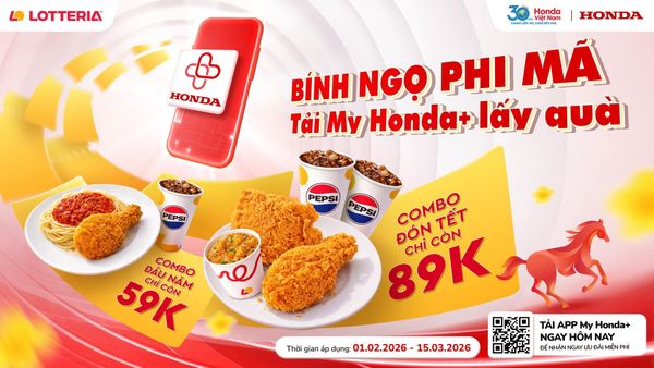 📣Rộn ràng không khí đón Tết, My Honda+ chính thức tung đợt bão deal hời mới từ đối tác Lotteria, mời bạn tận hưởng chào năm mới Bính Ngọ!