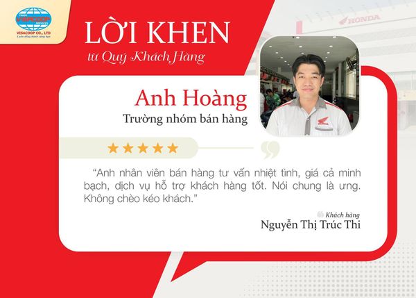 Được phục vụ và đồng hành cùng Quý khách là niềm vinh dự và hạnh phúc của HEAD Visacoop. Sự hài lòng của bạn chính là món quà vô giá nhất mà Visacoop luôn trân quý.
