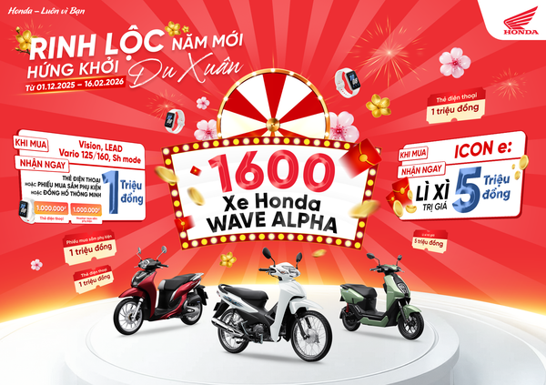 Từ 01.12.2025 – 16.02.2026, tất cả khách hàng mua xe Honda (kể cả xe điện) tại Visacoop đều có cơ hội tham gia quay số trúng thưởng xe Wave Alpha. Trong đó, nếu quay không trúng thưởng, khách hàng vẫn nhận ưu đãi như sau: